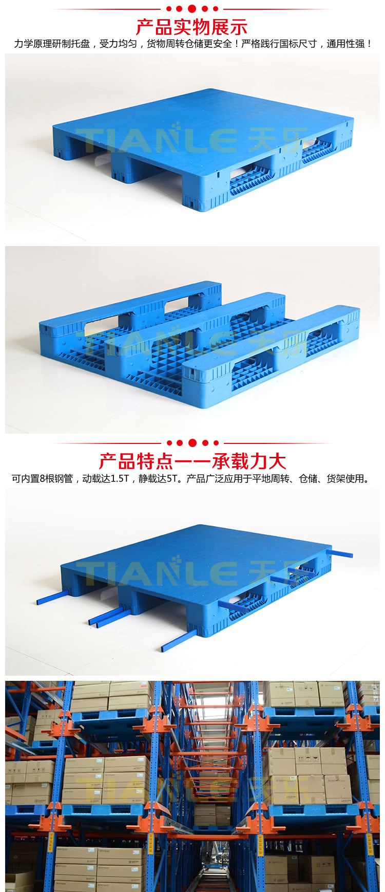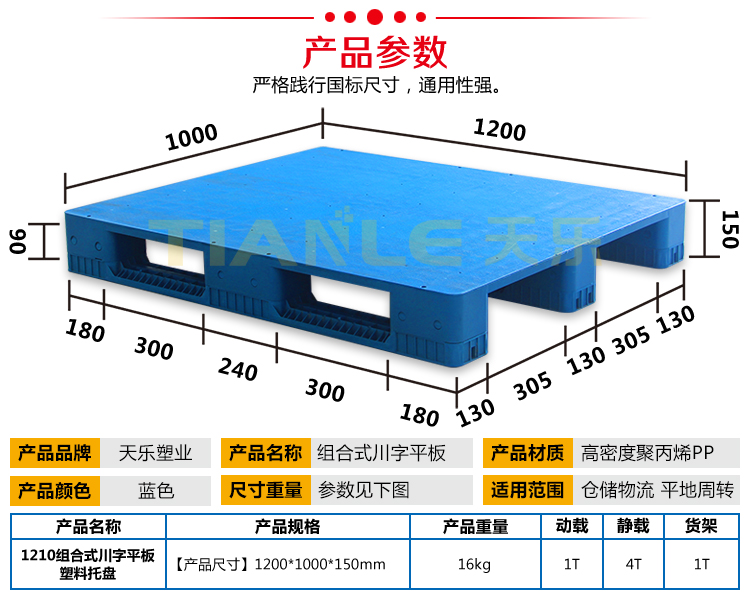 山東天樂塑料科技有限公司,主要生產(chǎn)塑料托盤,塑料周轉(zhuǎn)筐,塑料垃圾桶,銷售木包裝箱木托盤,膠合板托盤,產(chǎn)品使用于汽車、食品、醫(yī)藥、造紙、印刷、電子、電器、化工、紡織、服裝、倉儲(chǔ)物流、環(huán)衛(wèi)等行業(yè)。產(chǎn)品多規(guī)格全價(jià)格實(shí)惠,大廠家售后保障體系完善。產(chǎn)品品種,以載重量分類,包括:一次 使用的特輕型、輕型、標(biāo)準(zhǔn)型、貨架加重型等適用范圍:食品醫(yī)藥化工紡織汽配廠等行業(yè)倉儲(chǔ)物流運(yùn)輸用